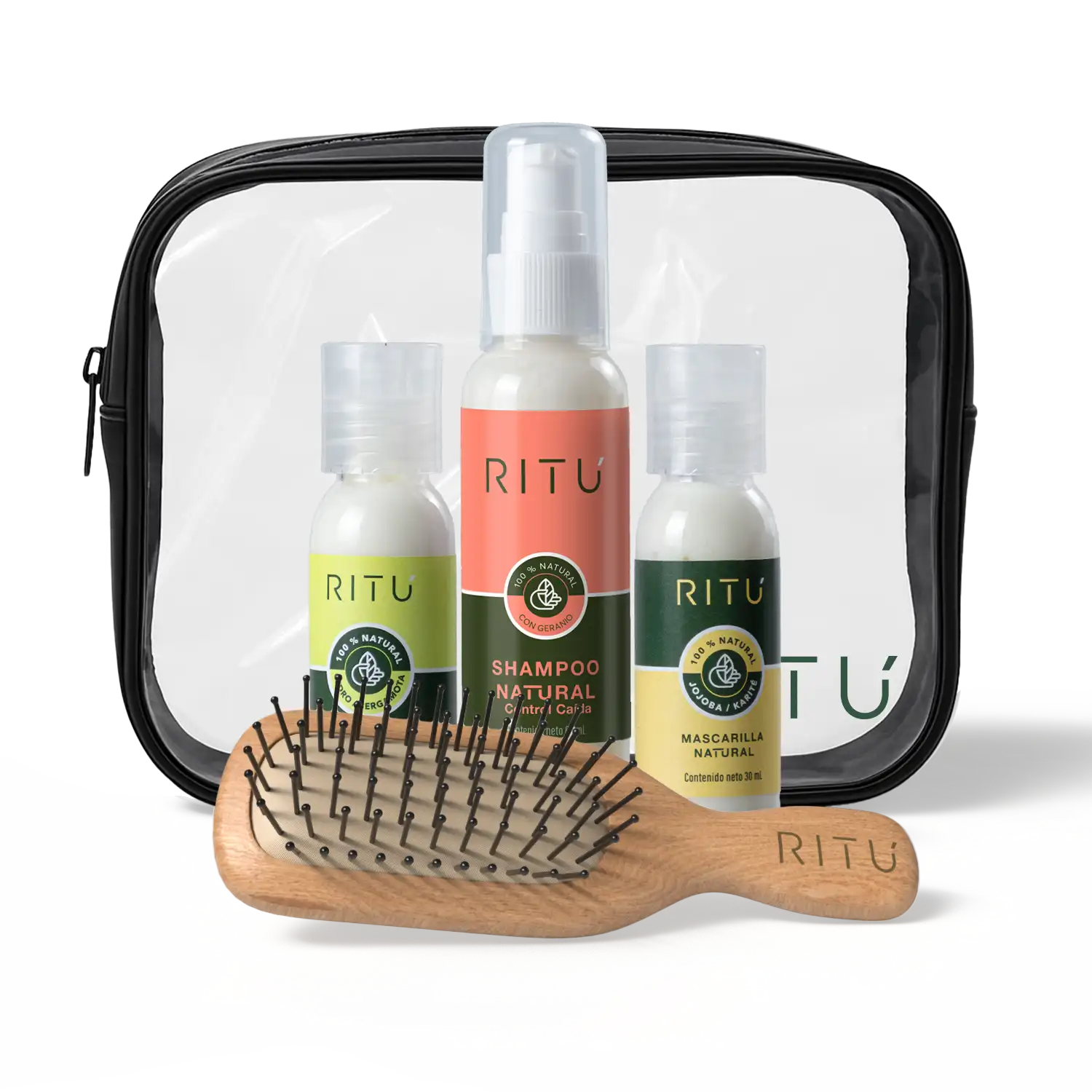 Recibe GRATIS una cosmetiquera exclusiva RITÚ y un Mini Cepillo RITÚ, perfectos para llevar tu Ritual de Belleza a donde vayas.