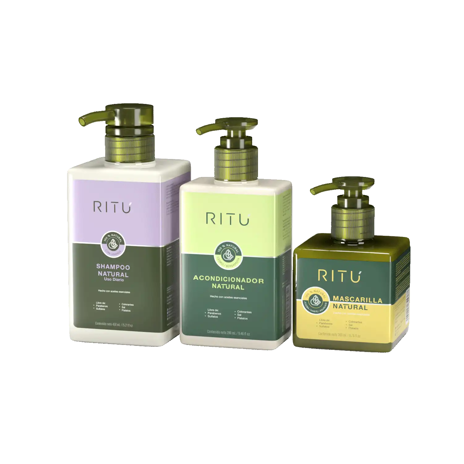 Shampoo 100% NATURAL Uso Diario 450ml + Acondicionador 100% NATURAL 280ml+ Mascarilla Capilar 100% NATURAL 260ml.