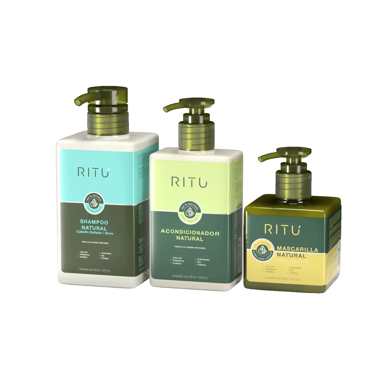 Shampoo 100% NATURAL Cabello Dañado o Seco 450 ml + Acondicionador 100% NATURAL 280ml + Mascarilla Capilar 100% NATURAL 260ml.
