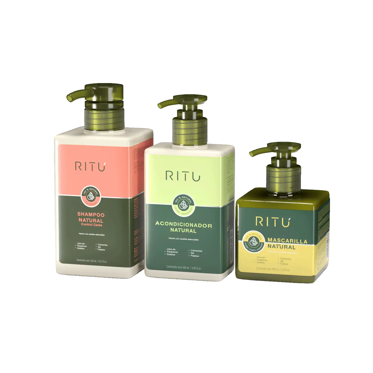 Shampoo 100% NATURAL Cabello Control Caída 450 ml + Acondicionador 100% NATURAL 280ml + Mascarilla Capilar 100% NATURAL 260ml